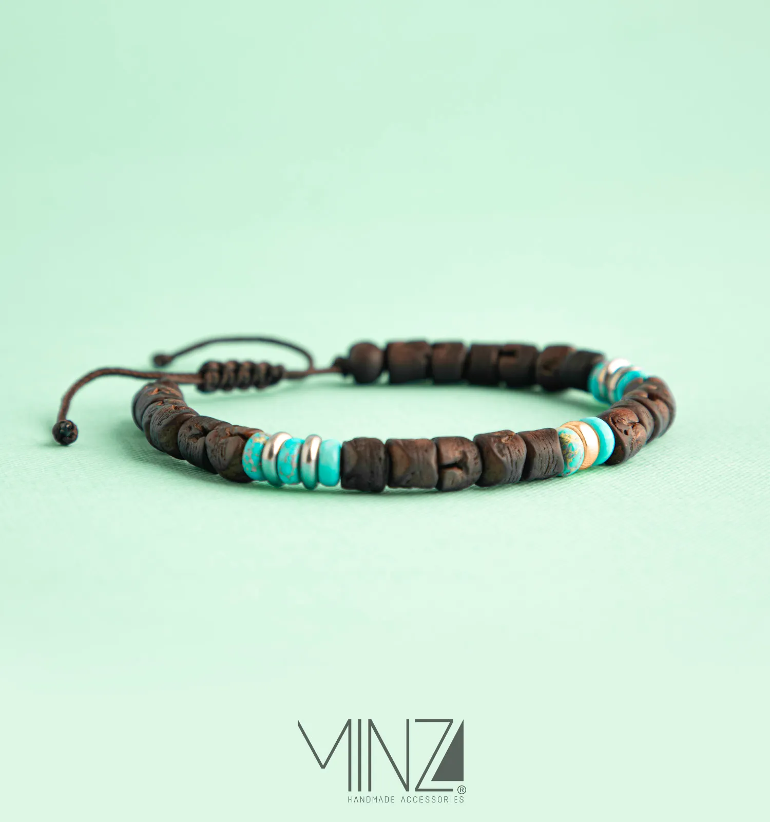 - The warm brown tones of date pits symbolize stability, reliability, and grounded energy. Brown evokes a strong connection to nature and creates a sense of comfort and security. Turquoise tones represent clarity, confidence, and emotional balance. This color is associated with calmness, strength, and positive energy. The golden accents symbolize success, prosperity, and warmth. Gold reflects confidence, ambition, and timeless elegance. Together, these colors create a balanced masculine palette that expresses strength, calm confidence, and natural sophistication.