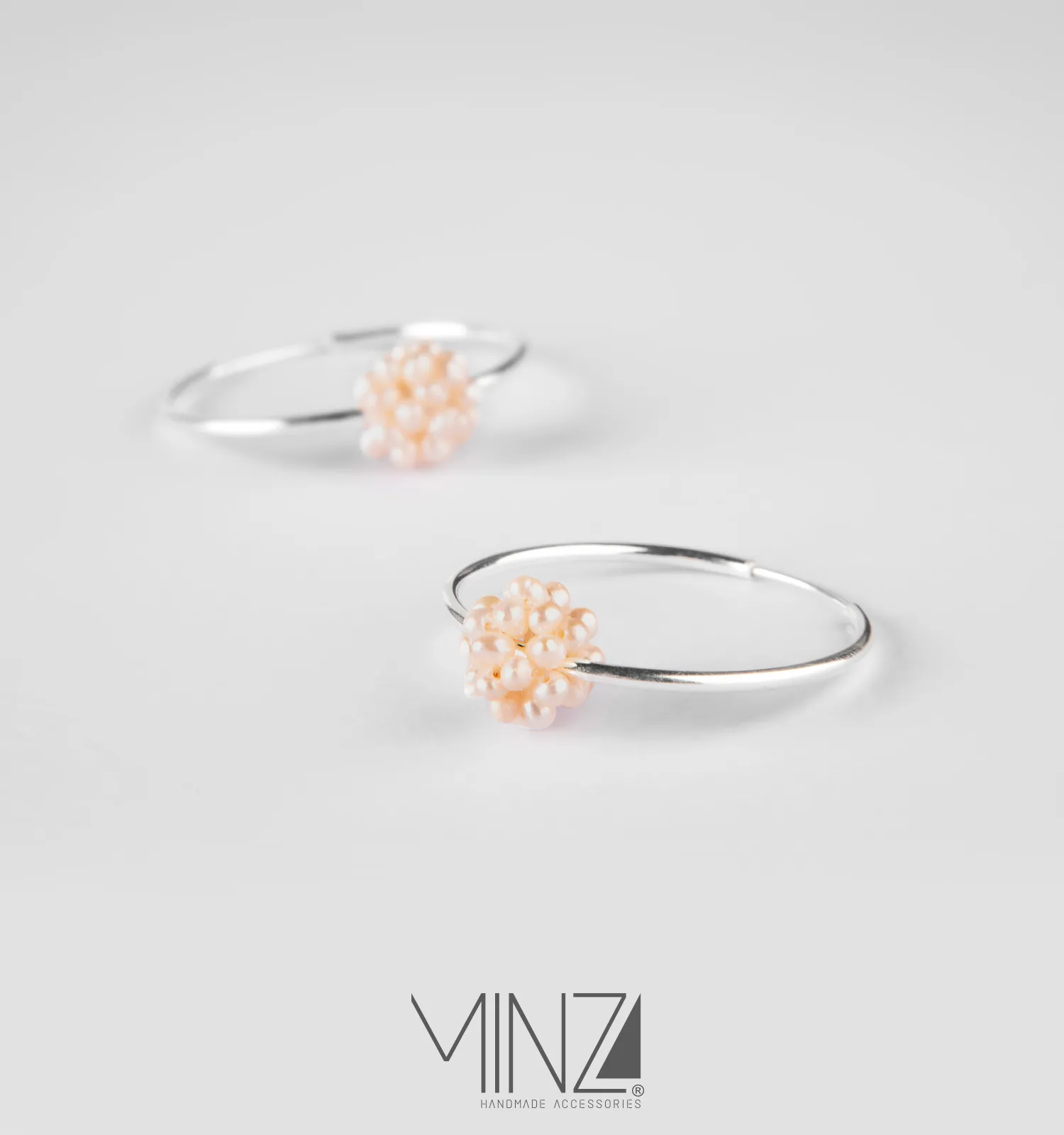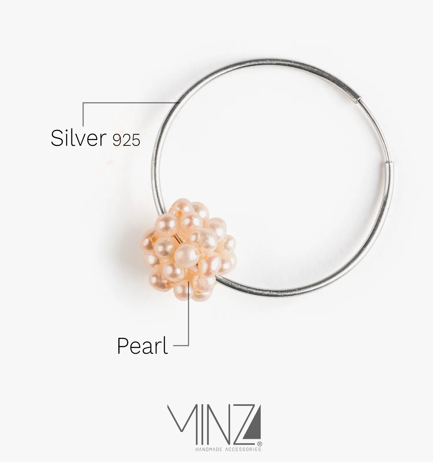 Designed in a classic circular form, the earrings symbolize eternity, unity, and wholeness — a timeless shape that never goes out of style. The polished silver hoop gently frames a cluster of soft pink natural pearls, adding a luminous glow and feminine warmth to the design. Their gentle movement catches the light beautifully, creating a refined sparkle with every step.