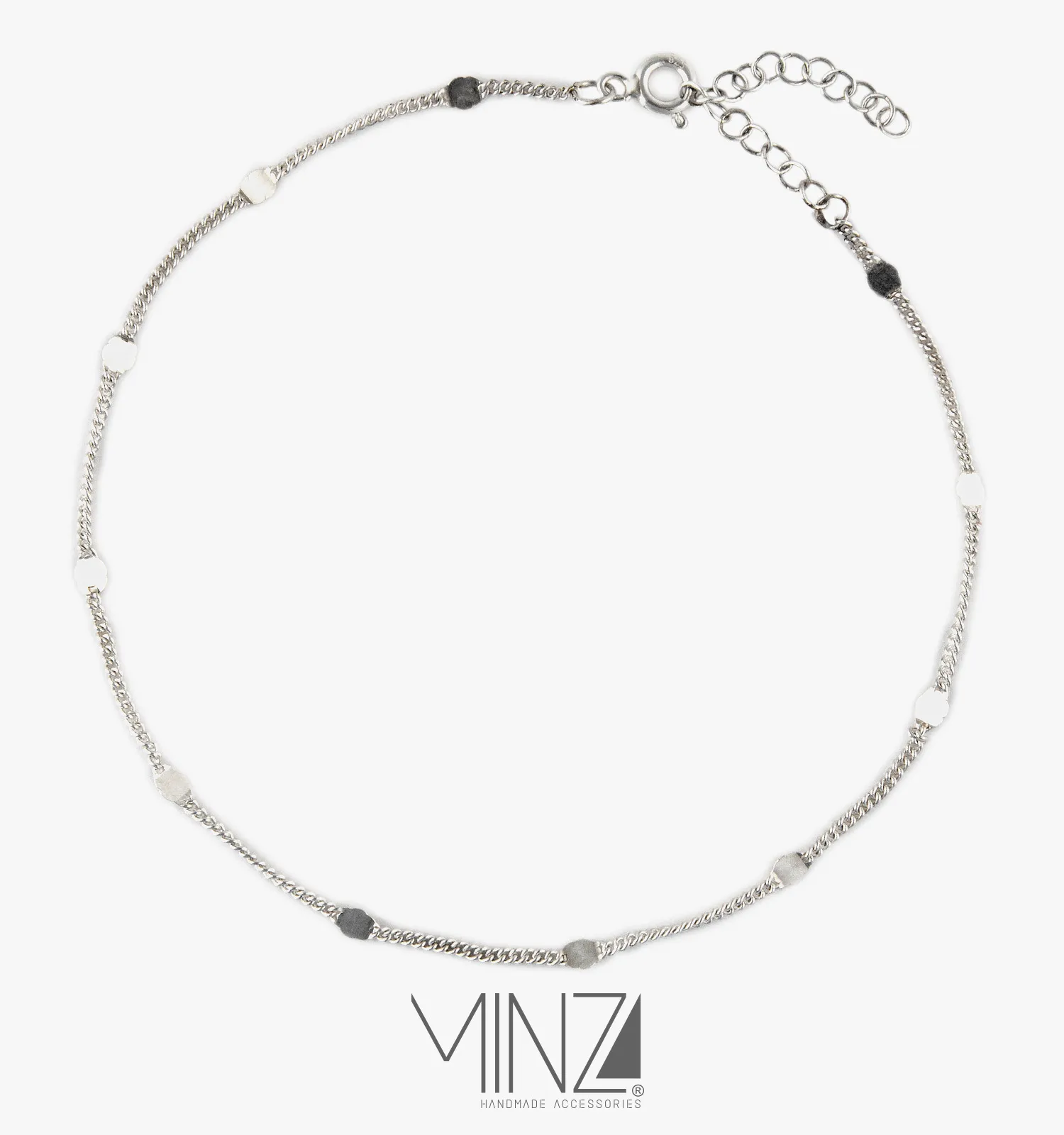 The fine silver chain measures 25 cm and is completed with an adjustable extender chain and secure clasp, allowing a comfortable fit from 19 to 25 cm. Lightweight, hypoallergenic, and designed for everyday wear, this anklet offers both practicality and timeless style.