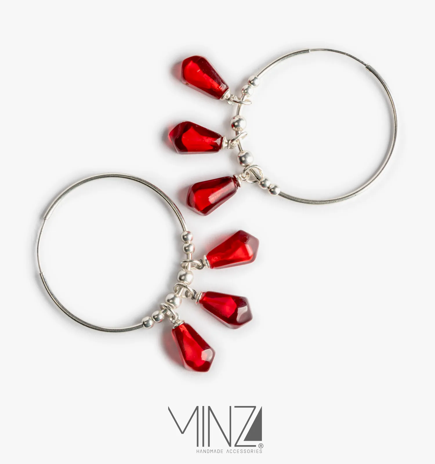 The “Chele Night” Silver Earrings combine sterling silver and pomegranate-inspired resin in a bold, hypoallergenic hoop design.