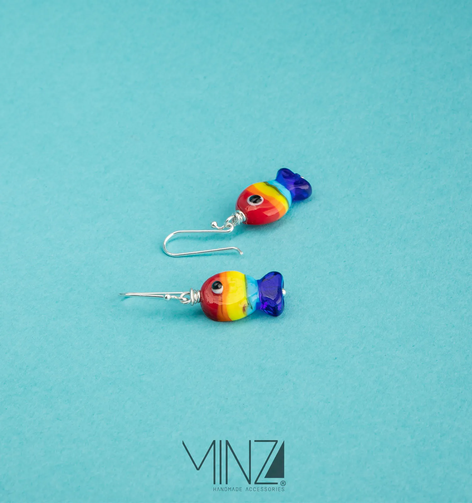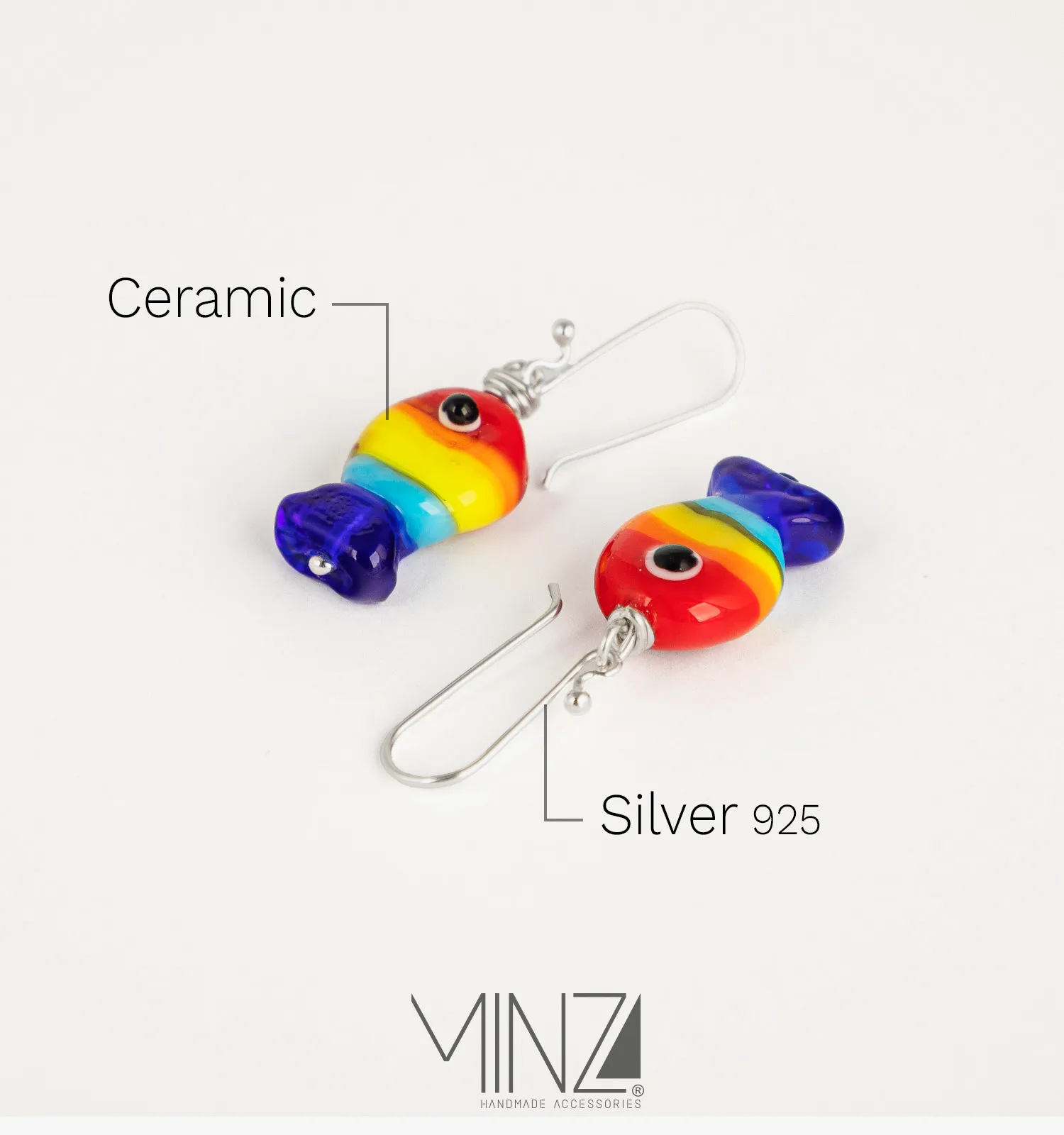 At the heart of the design hangs a colorful ceramic fish, delicately connected to a fine silver wire and finished with a sterling silver shepherd hook clasp. The flowing drop silhouette adds gentle movement with every step, allowing the earrings to catch the light and bring subtle color and energy to your look. Measuring approximately 4 cm in length and weighing only 1.500 grams, they remain lightweight and comfortable for all-day wear.