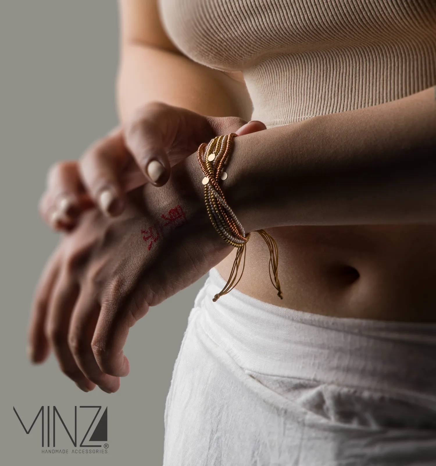 Styling the “Copper” bracelet is both versatile and expressive. Pair it with neutral tones like beige, ivory, or brown to enhance its warmth, or contrast it with black for a bold, sophisticated look. Its layered structure makes it perfect for stacking or wearing alone as a statement of quiet confidence.