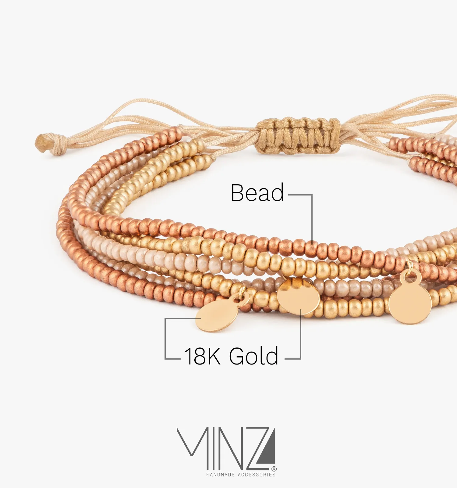 The “Copper” Gold Bracelet blends 18K gold charms with layered Czech beads in rich copper tones for a refined and adjustable everyday statement.