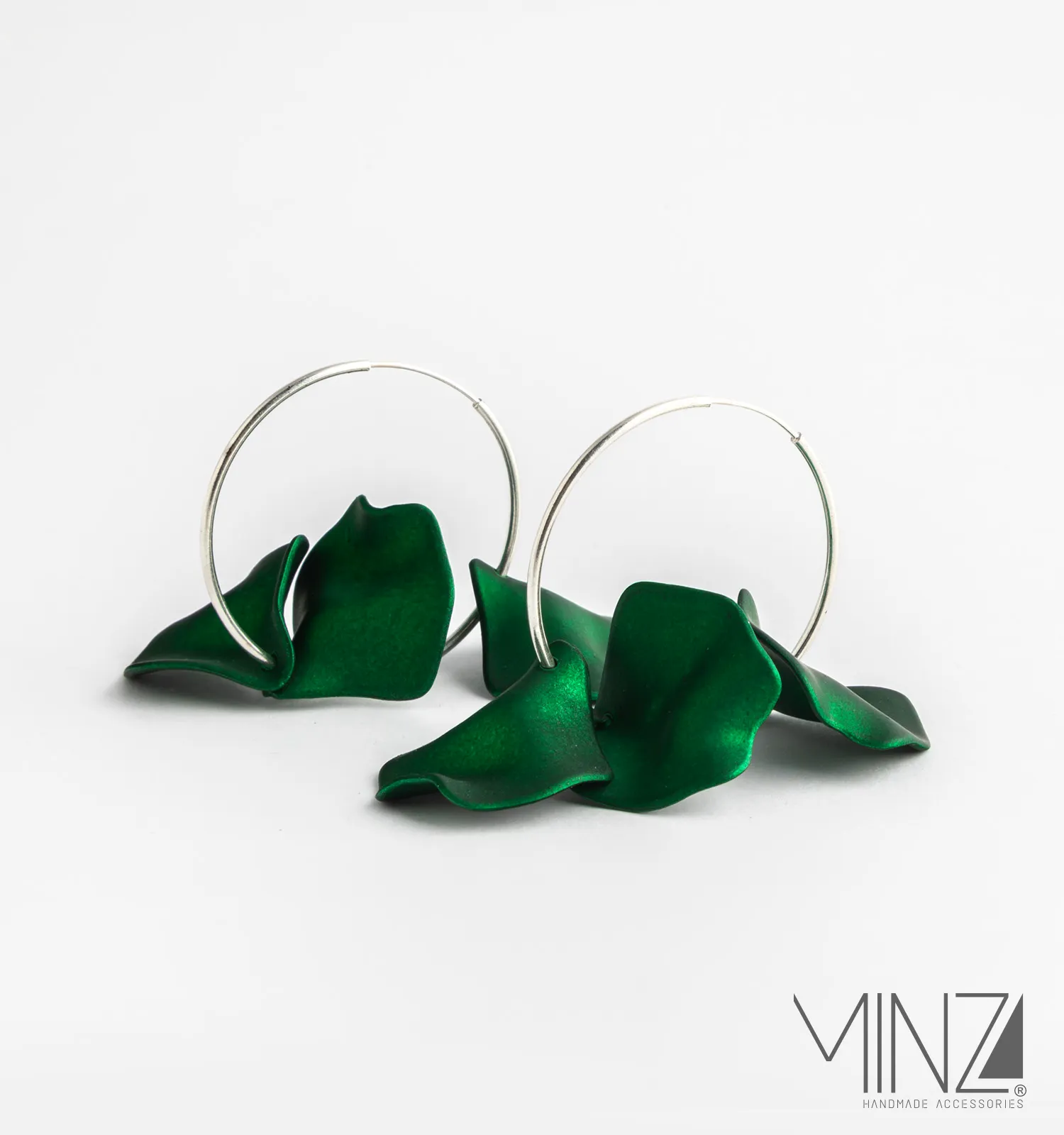A circle of life in shades of green. The “Emerald” Silver Earrings blend sterling silver and petal-inspired design into a symbol of renewal, harmony, and everyday elegance.