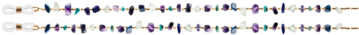 Handcrafted with natural broken stones including amethyst, turquoise, prehnite, and lapis lazuli, this glasses chain is accented with delicate gold-toned Czech beads that create warmth and balance between the stones. Each irregular stone carries its own texture and character, making every piece subtly unique.