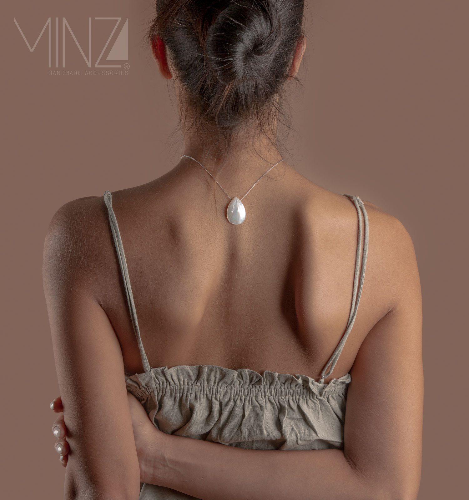 Inspired by the serene beauty of oceanic treasures, we named this necklace ” Oyster ” Like the delicate shell, its tear-shaped stone pendant embodies the timeless elegance and natural allure of the sea.