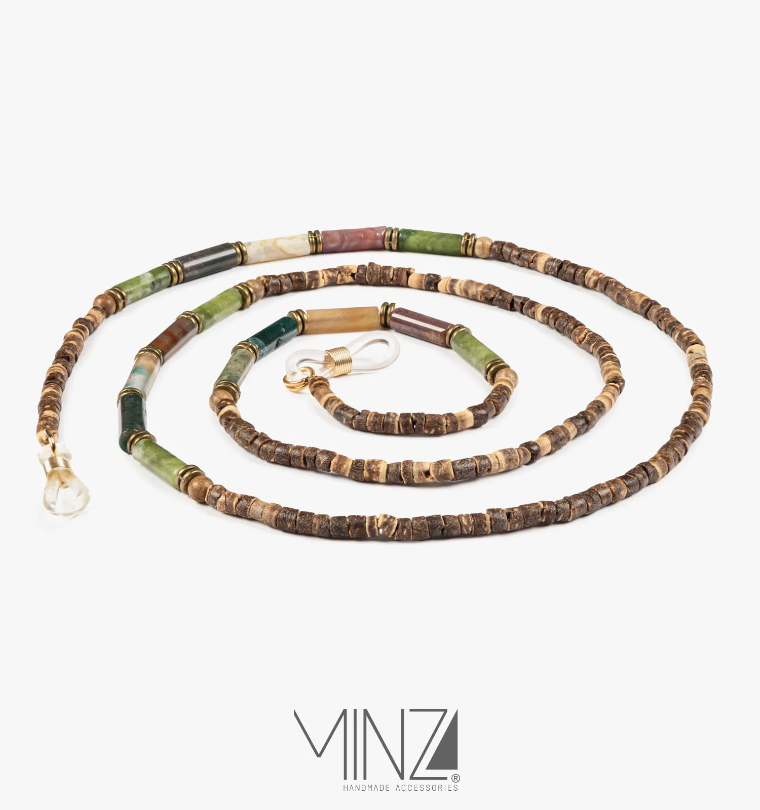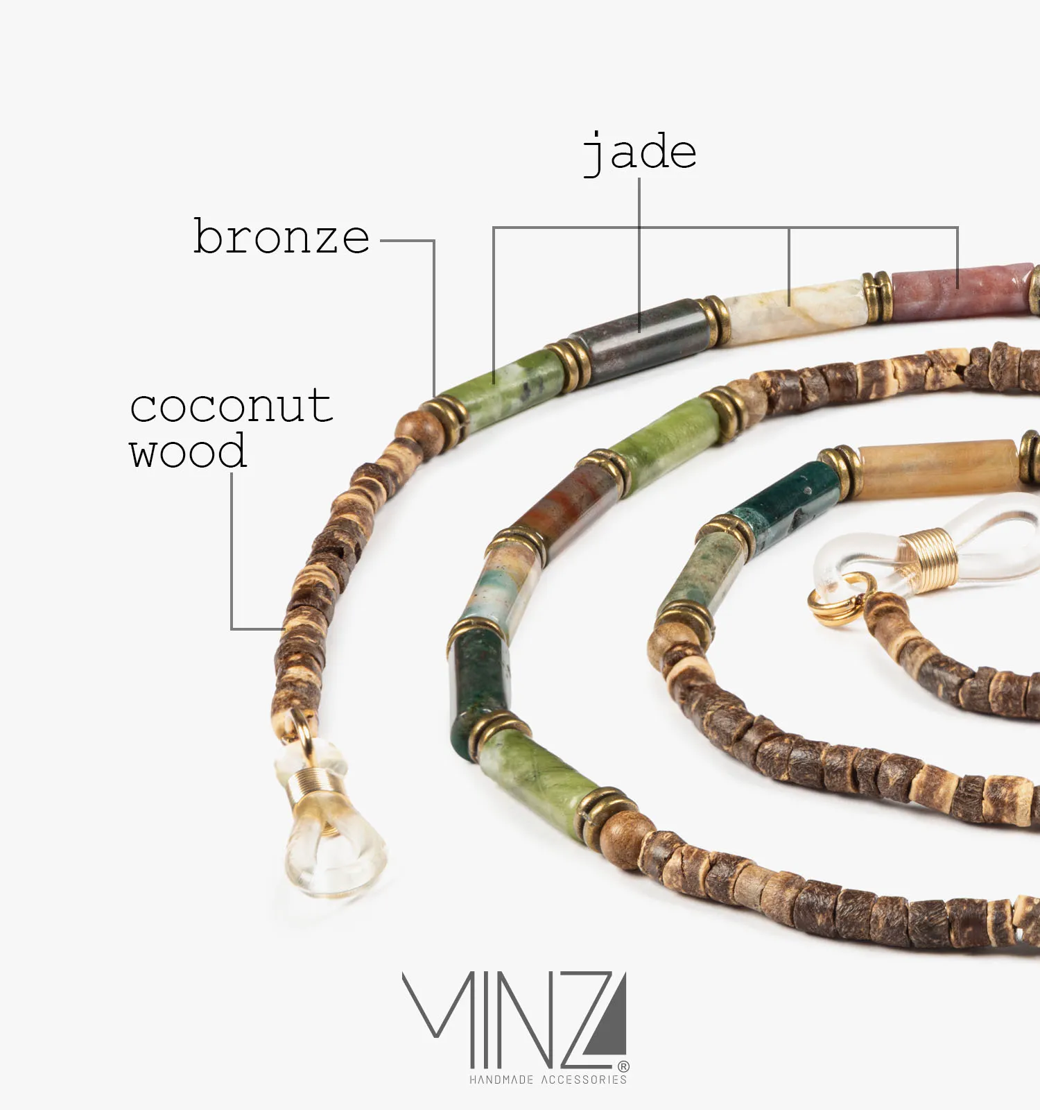Silva is a unisex Eyewear chain crafted from jade, coconut wood, and bronze — an earthy, nature-inspired accessory designed for both women and men who value balance and organic elegance.