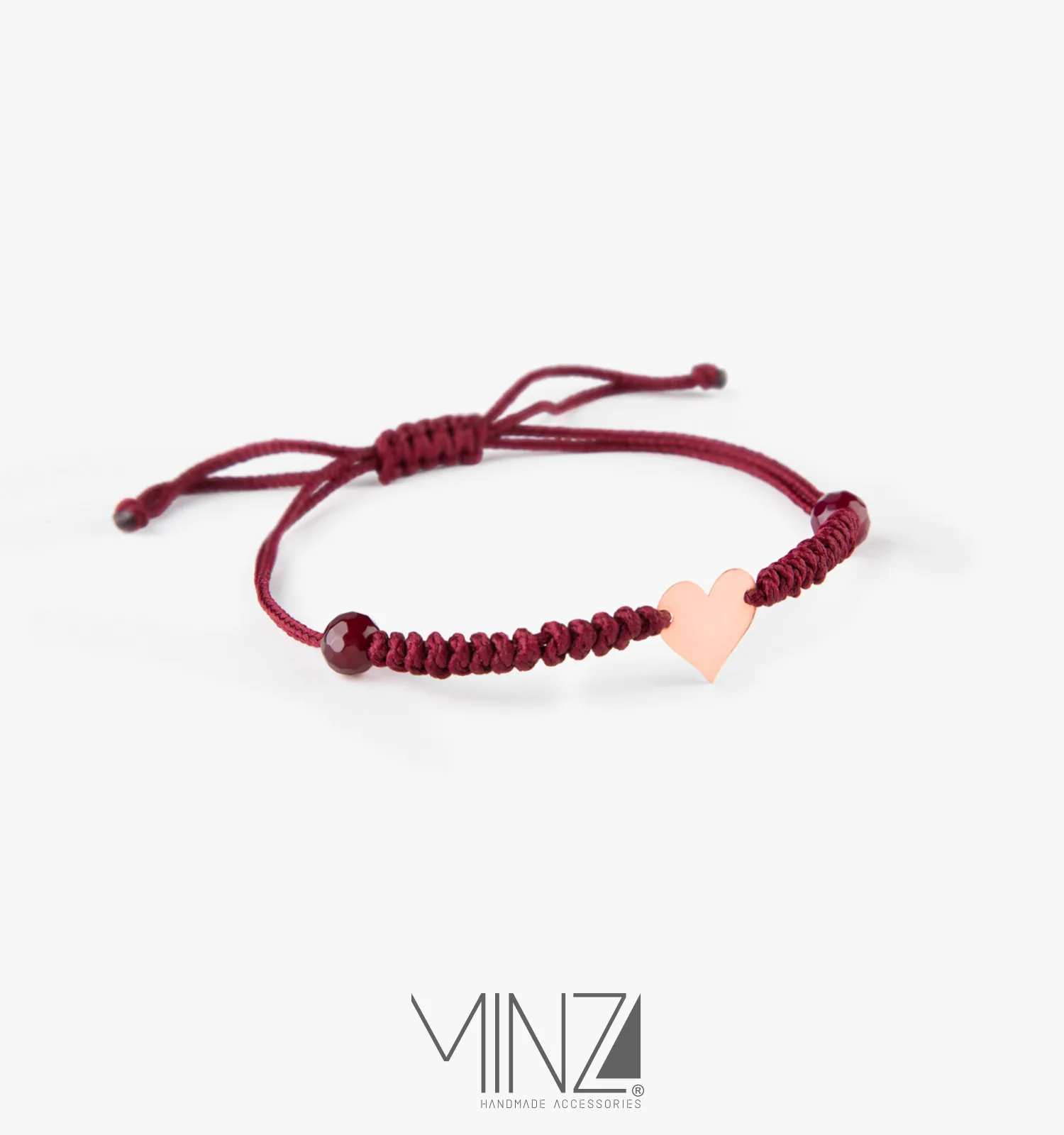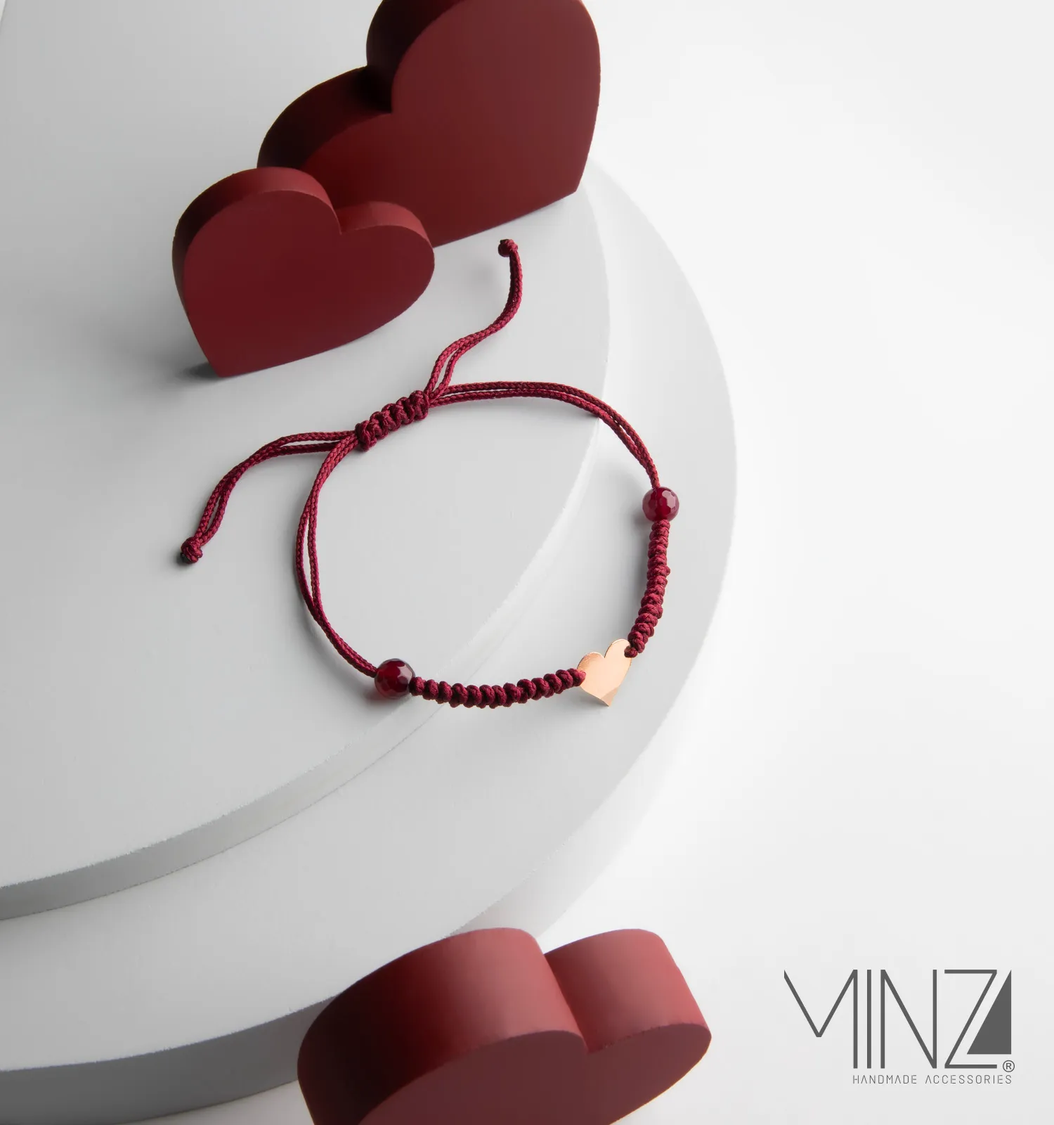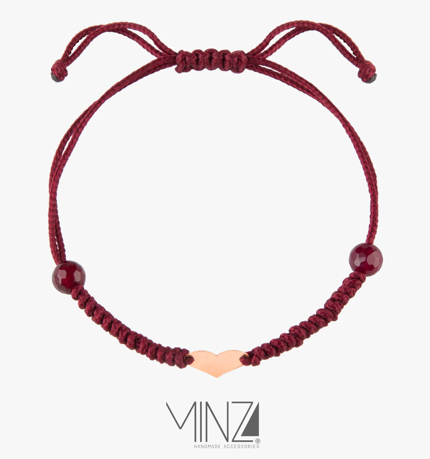 At its center rests a luminous 18K gold heart plaque (11×11 mm, 0.270 g), a gentle reminder of connection, compassion, and emotional strength. On both sides, the bracelet flows into a beautifully handwoven cord that ends with delicate red agate stones, adding warmth and depth to the design. This thoughtful composition blends softness and resilience — love paired with grounding energy.