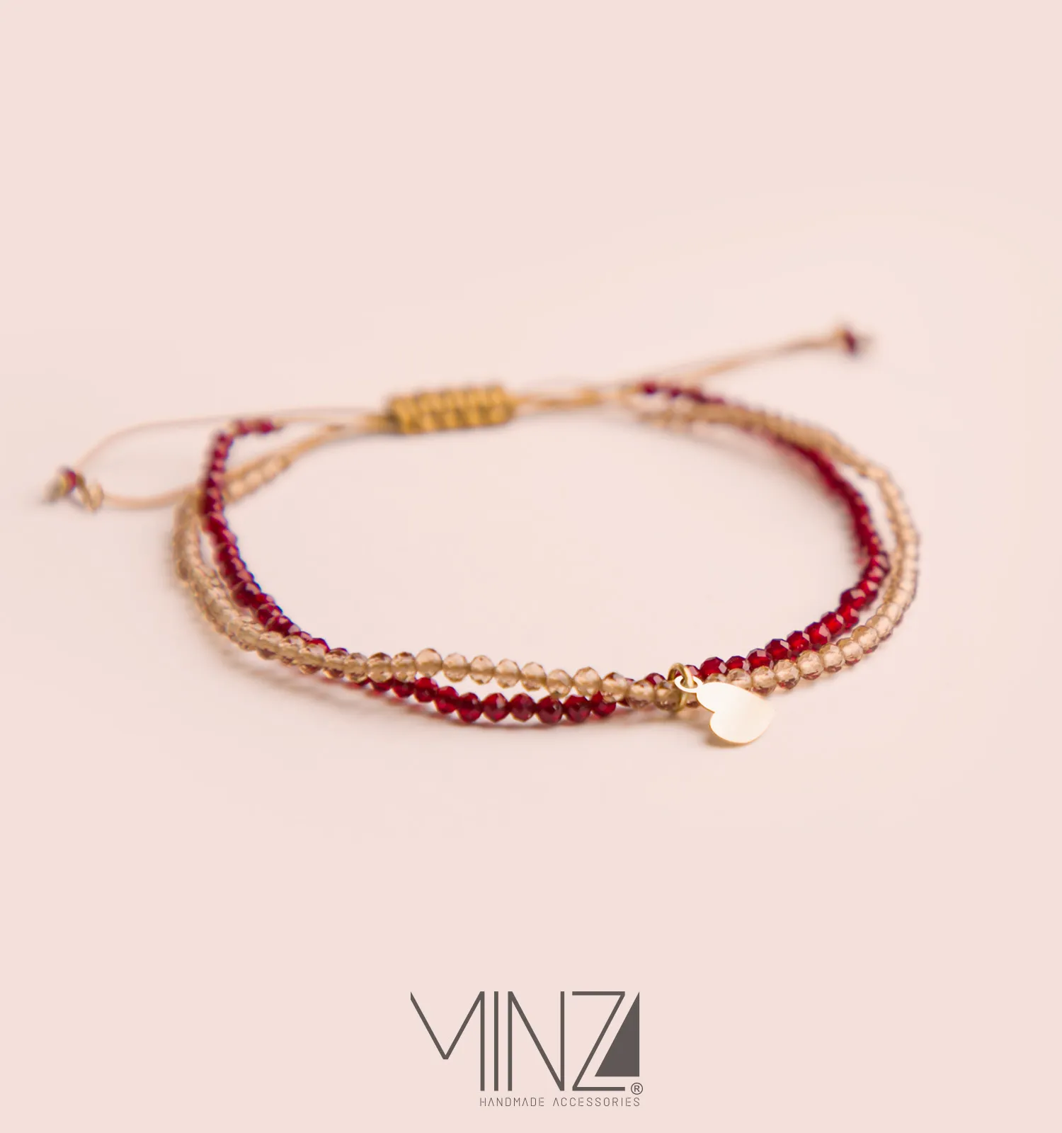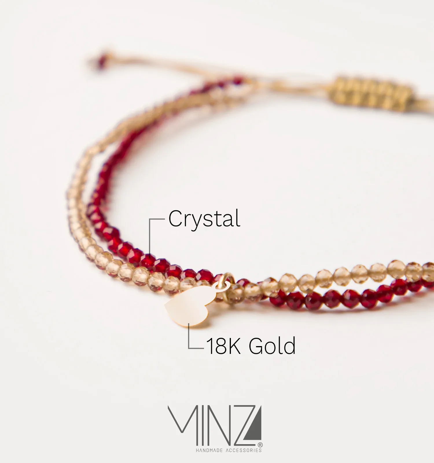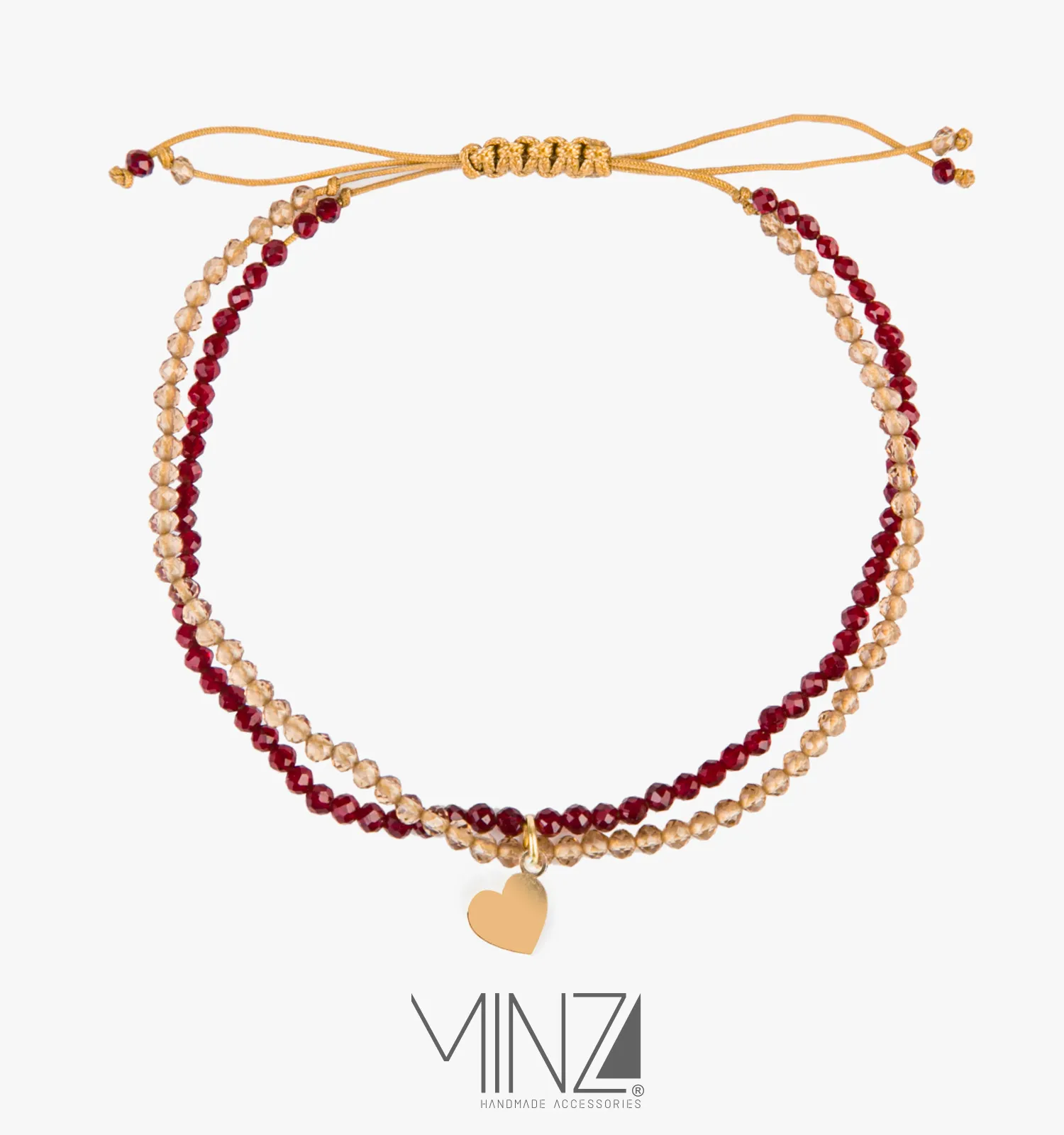 At the center of the design rests a graceful gold heart charm — a timeless symbol of love, connection, and emotional harmony. Two delicate strands pass through the heart pendant, creating a layered silhouette that adds depth and dimension to the bracelet. These strands are adorned with small citrine and agate stones, carefully arranged to balance warmth, color, and texture.
