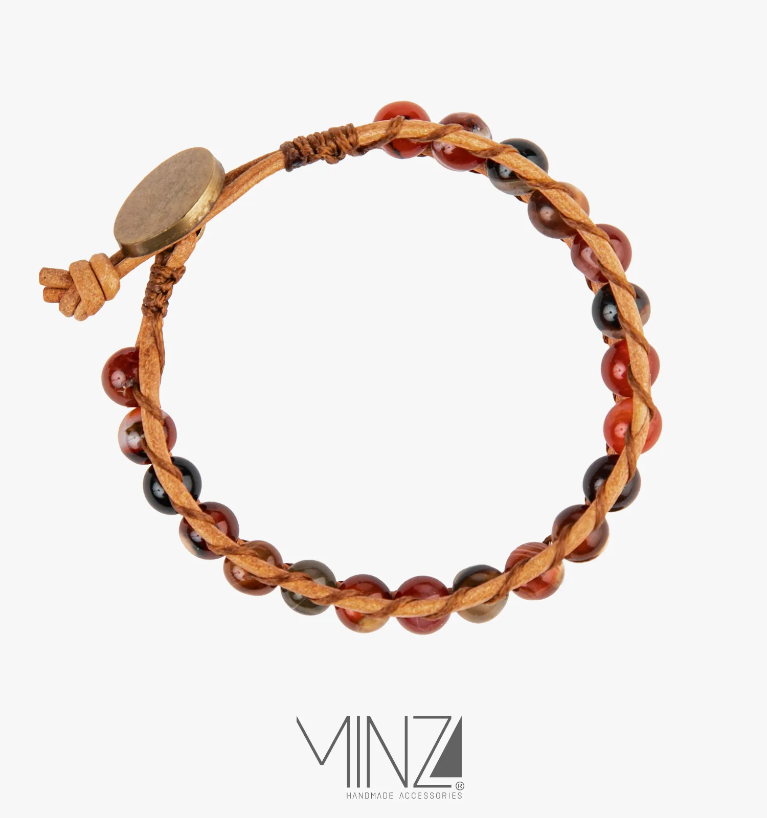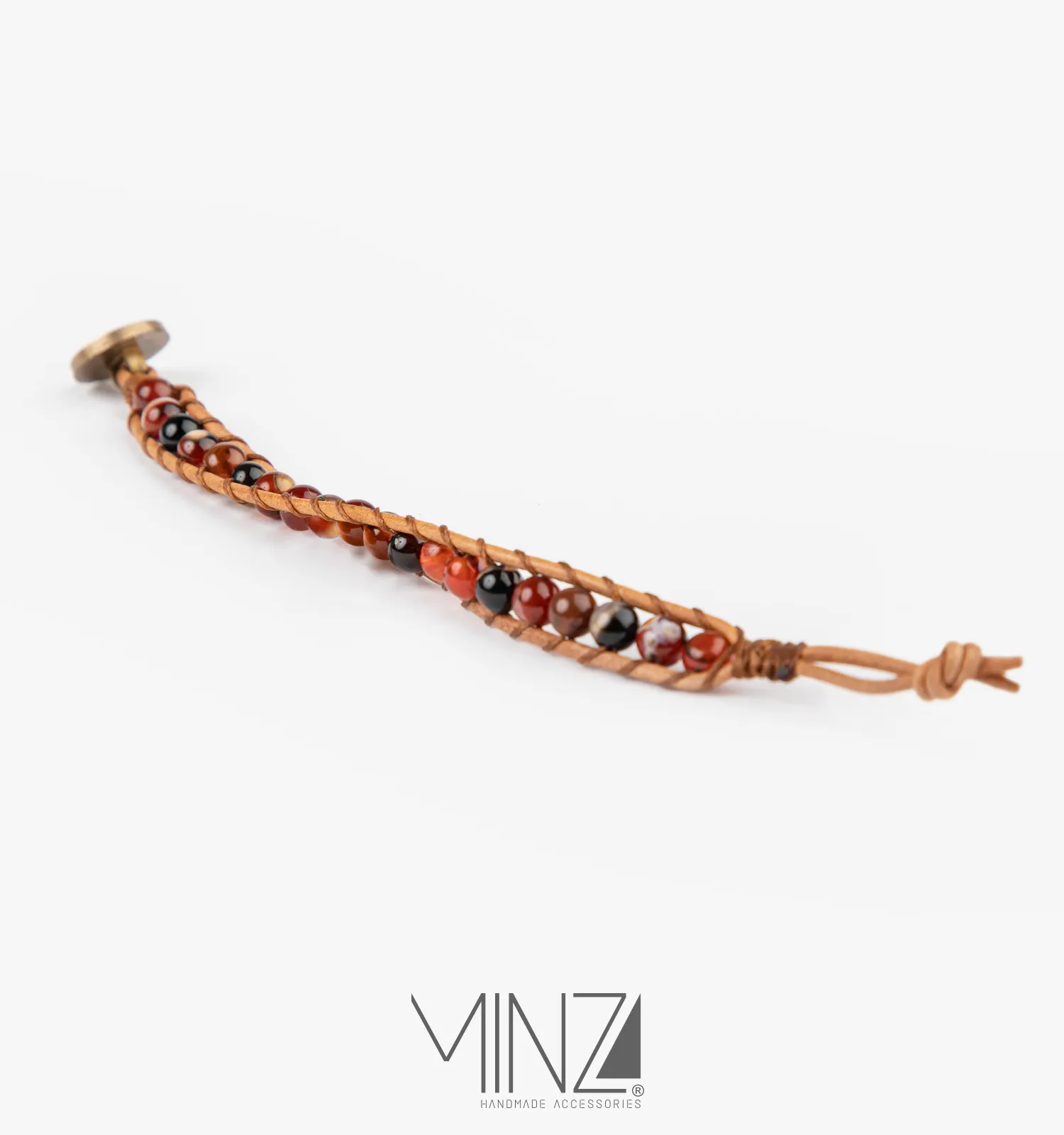 The warm brown tones of leather symbolize stability, reliability, and connection to the earth. Together, leather and agate create a bracelet that represents security, strength, and emotional calm.