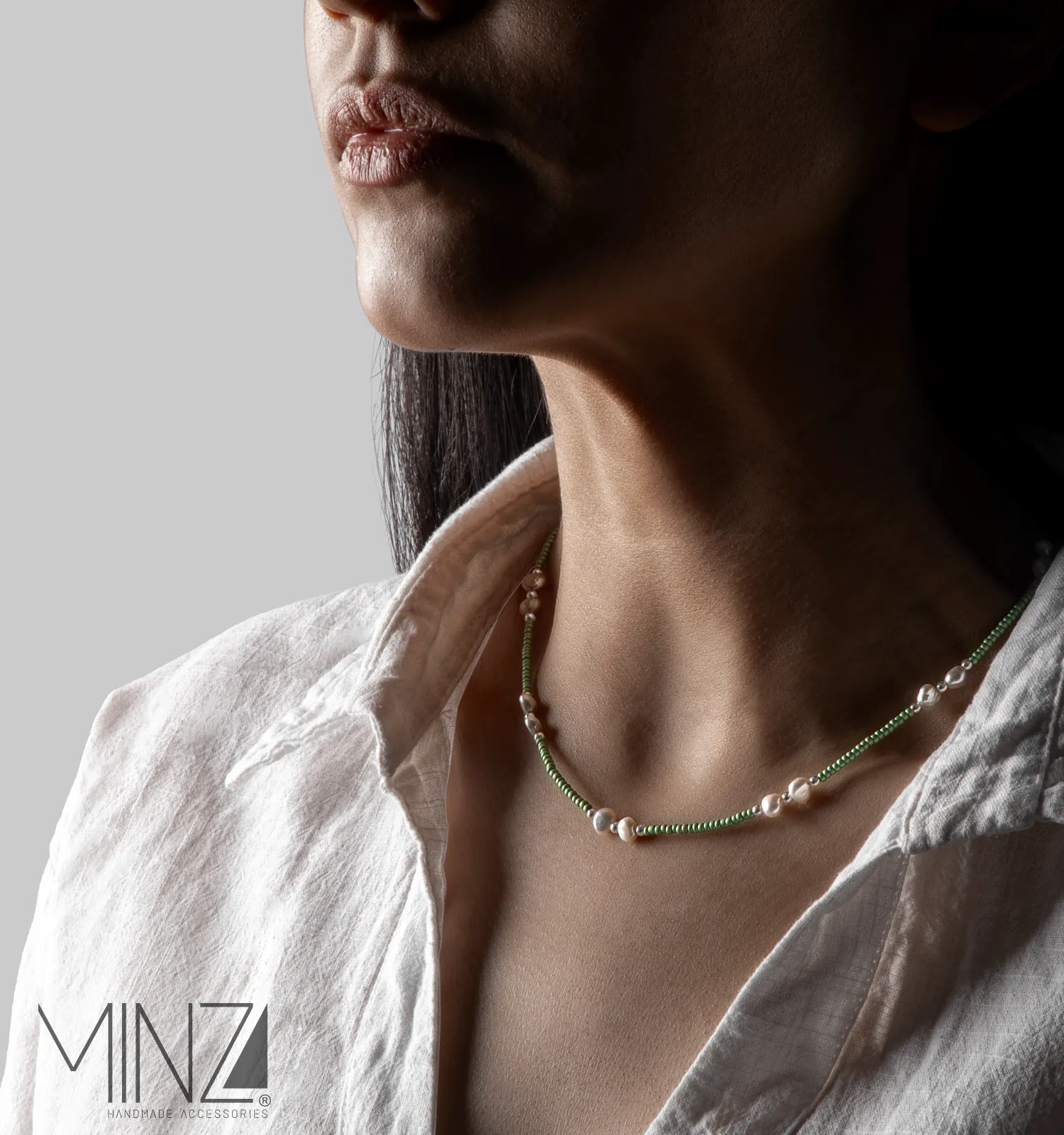 Mysterious elegance meets natural softness in the “Medusa” Silver Necklace — a graceful piece designed for women who love jewelry with character, symbolism, and refined color. Handcrafted from sterling silver, Czech green seed beads, and cultured pearls, this necklace blends artistic craftsmanship with timeless femininity.