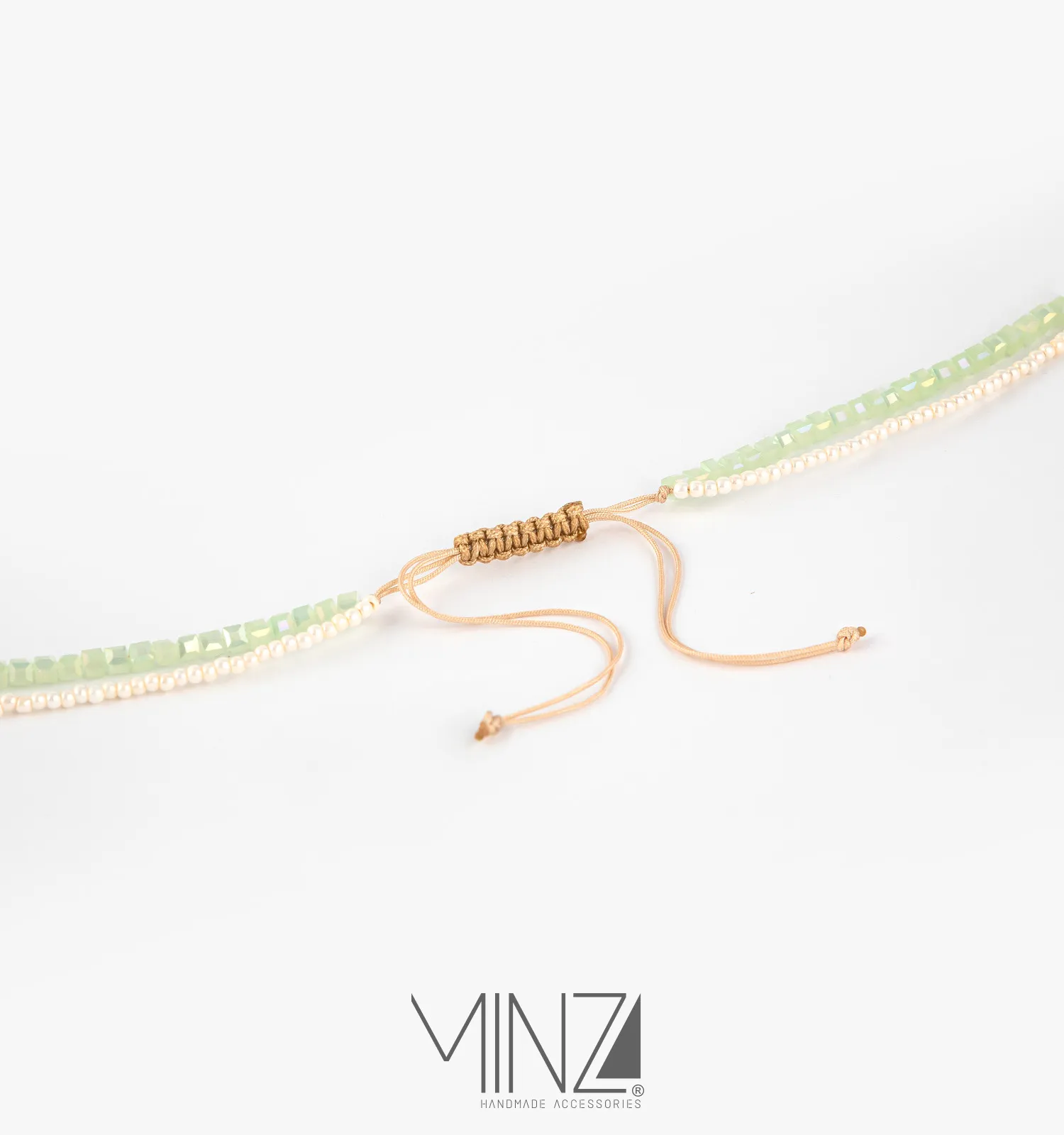 Two rows of carefully selected beads and crystals create a lively yet harmonious palette, giving the necklace depth, texture, and light movement. Measuring approximately 40 cm in length, the necklace is finished with an adjustable sliding-knot closure that allows up to 10 cm of size flexibility, ensuring comfort and versatility for everyday wear.