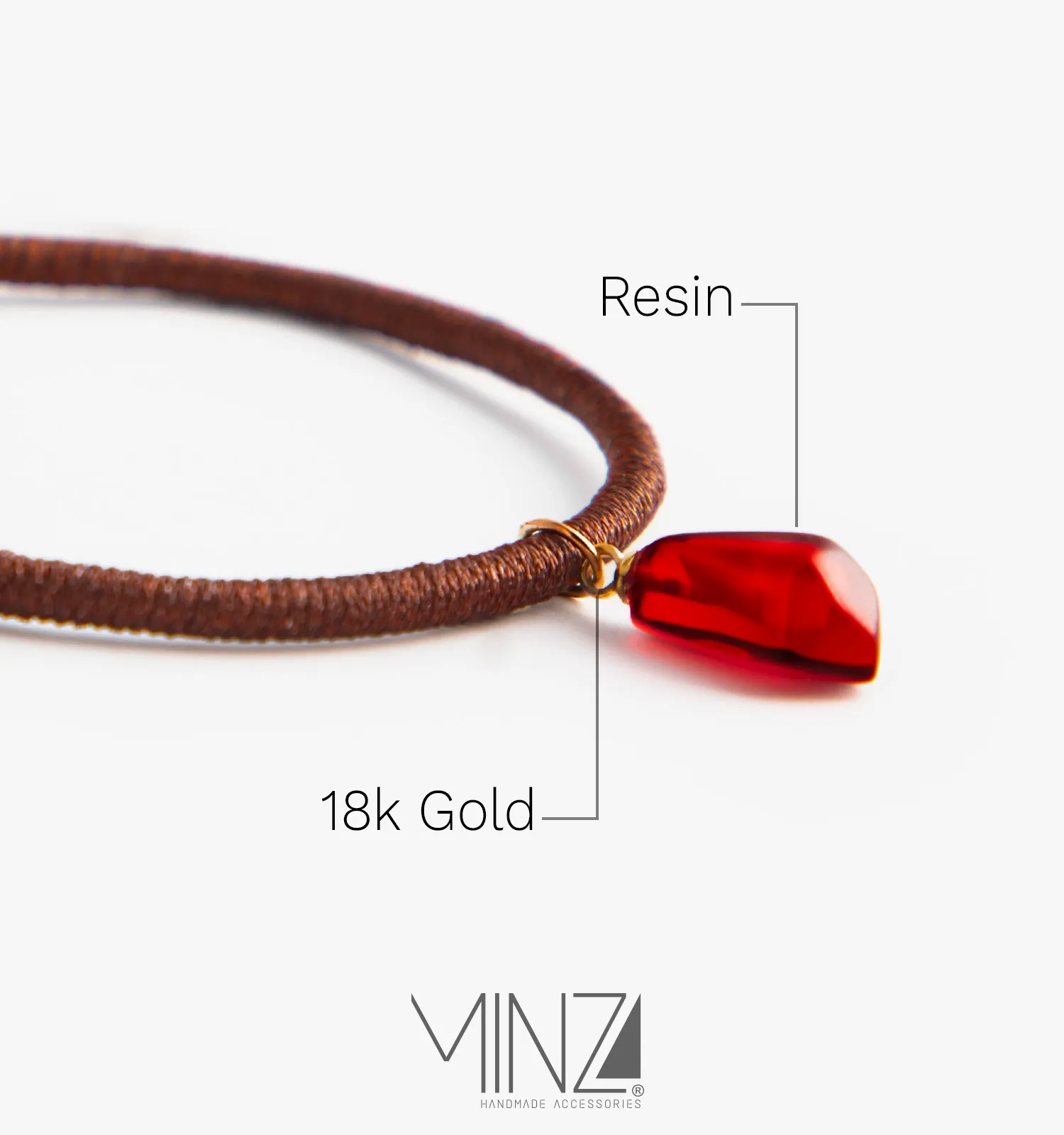 The “Red Mocha” Gold Bracelet is a handcrafted women’s bracelet featuring an 18K gold charm, pomegranate resin plaque, and shimmering brown hemp cord with an adjustable sliding-knot closure for comfortable daily wear.