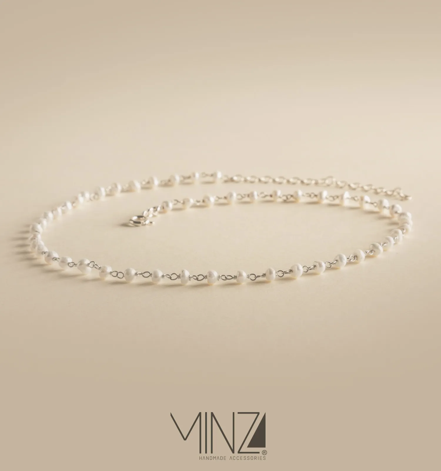 The “Silono” Silver Necklace blends sterling silver and natural pearls into a delicate piece inspired by purity, calm, and everyday sophistication.