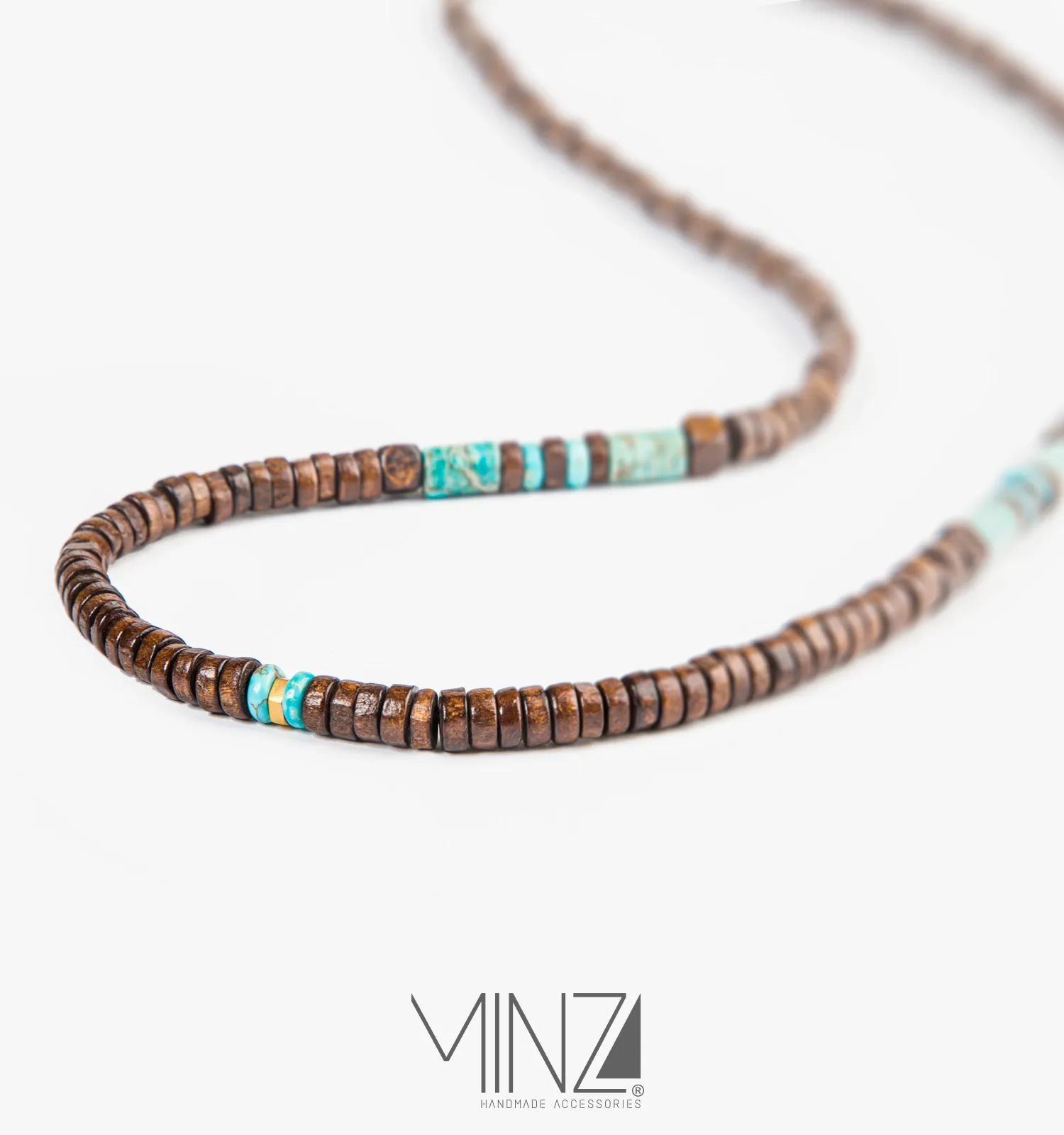 Inspired by natural materials and earthy tones, this necklace reflects balance and inner stability. The contrast between the glow of gold, the calming blue-green jasper, and the warmth of natural wood creates a timeless and masculine aesthetic that pairs effortlessly with linen shirts, cotton basics, and neutral-toned wardrobes.