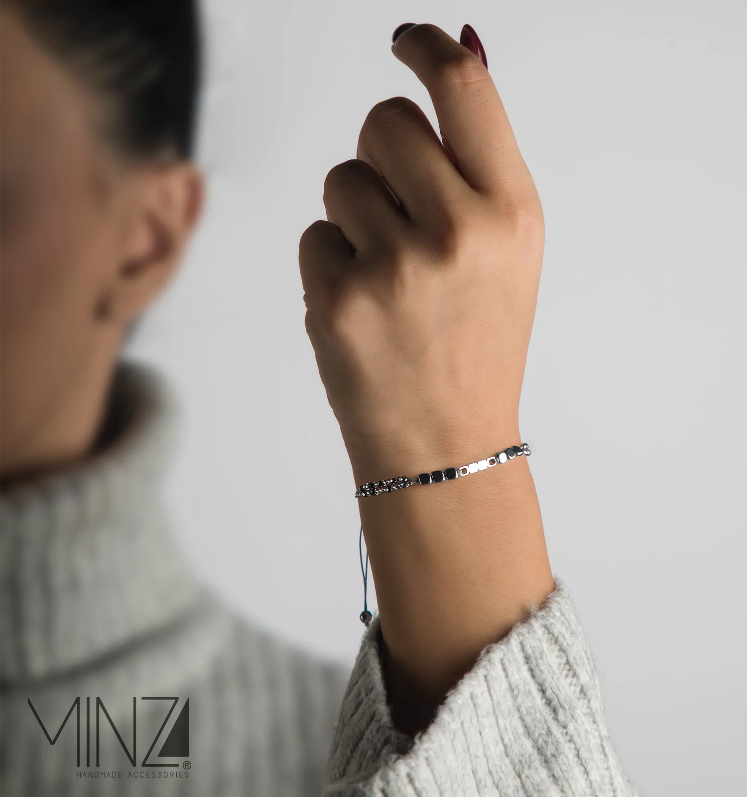 The “Square Stone” Silver Bracelet blends sterling silver, hematite, and Czech beads into a refined, adjustable piece designed for modern everyday balance.
